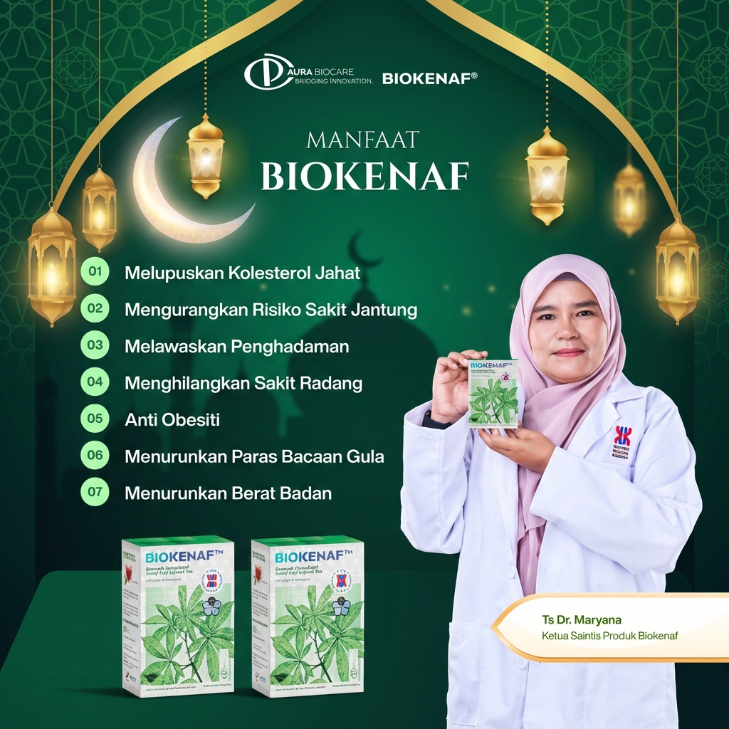 “Sebagai seorang saintis, saya perlu buktikan keberkesanan produk ini, bukan sahaja melalui kajian terperinci, dengan amalkan Biokenaf® saya dapat buktikan penurunan berat & penghapusan kolesterol jahat secara natural.” – Ts. Dr. Maryana Mohd Nor